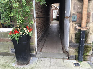 Yesterday, while strolling around the attractive town of Melrose, I stumbled upon a railway oddity that immediately intrigued me. Having visited this historic community in the Scottish Borders on several occasions, I’m well acquainted with the Melrose railway station which, though disused, is partially preserved alongside the A6091 road. (The elegant Victorian station building is now an Italian restaurant.) But this oddity wasn’t associated with the old station, which was built in 1849 by the North British Railway and remained in use until January 1969. Rather, it lay across town in Buccleuch Street, and featured a disused railway track – curiously sunk into the concrete floor of a narrow close, or passageway, running from front to rear of a restaurant building. The building in question, which stands opposite the Melrose post office, houses the award-winning Marmions Brasserie. The ‘close’ runs down the right side of the building at ground level, connecting Buccleuch Street to a small courtyard at the back of the brasserie. The mysterious narrow gauge railway is almost as wide as the passageway itself. Its purpose is unclear, though it was presumably installed when (or after) the structure now housing Marmions Brasserie was first built. The rusted steel tracks indicate an old tram or wagonway (like the one at Harewood House) that may once have been used to carry goods from their roadside drop-off to the storage yard beyond. We’re unsure whether, at one time, the rails extended further than the length of the close, but perhaps you can shed some light on this intriguing wagonway track? If so, please drop us a comment below.